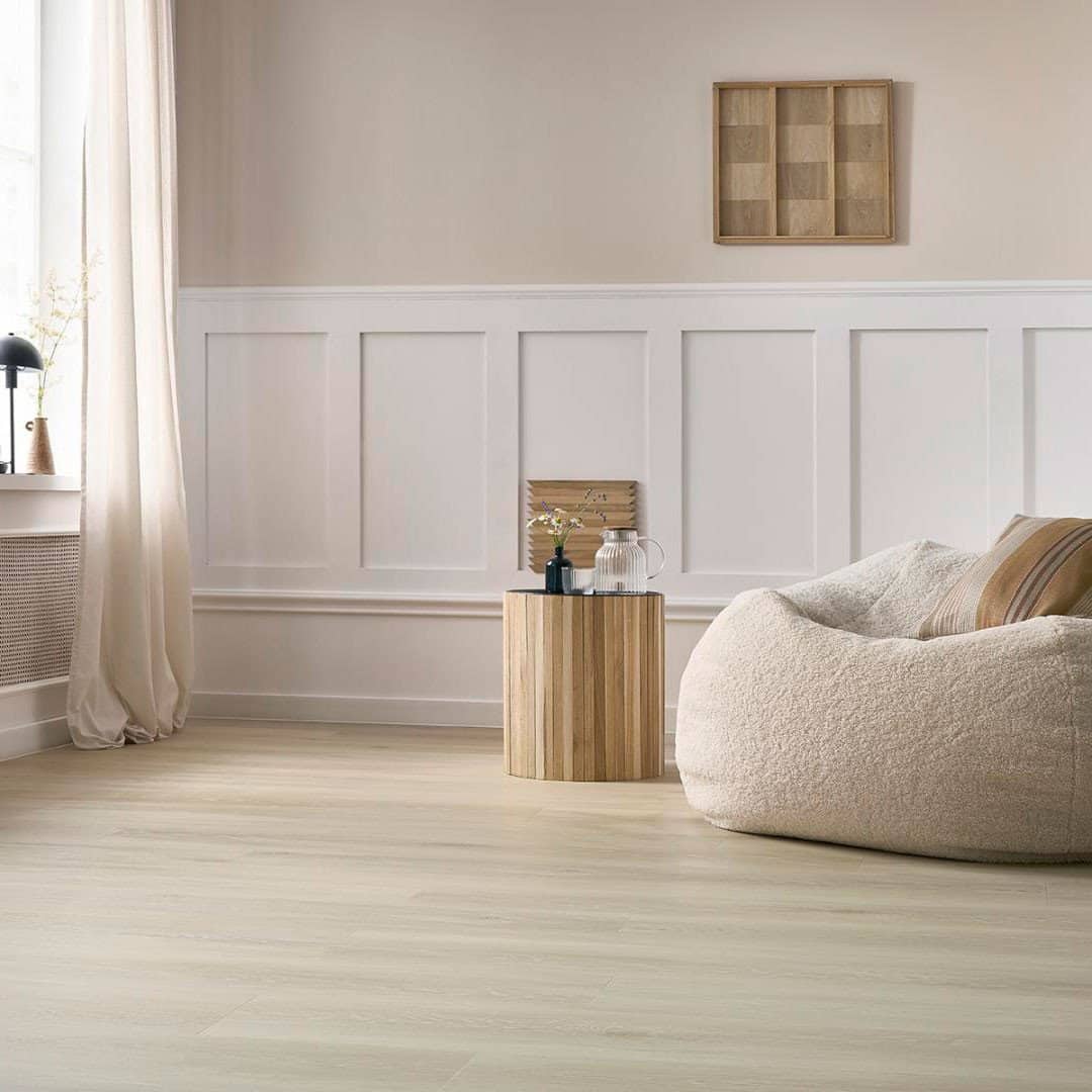 Suelo vinilico en clic Arbiton colección Amaron wood, con base acústica integrada.