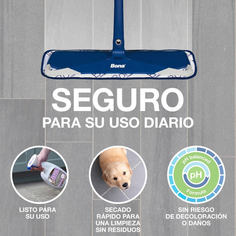 Si tiene mascotas, Bona Pet System es la solución completa para cuidar y mantener sus suelos lo más limpios posibles. El recambio Limpiador para Limpieza en Profundidad para Suelos Laminados y Superficies Duras Bona Pet System se ha diseñado de forma específica para limpiar de forma segura y eficaz suelos de piedra sellados, suelos de baldosas, laminados, de vinilo y LVT.