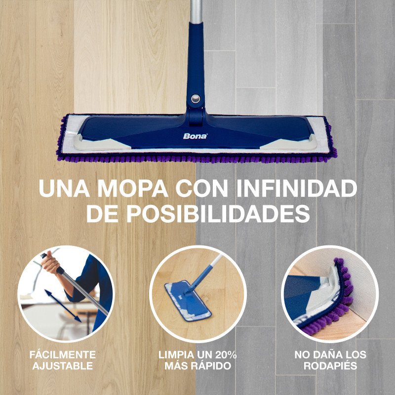 Incluye un Recambio Mopa Limpieza Profunda de Microfibra Bona y un Recambio Mopa de Microfibra para Barrer Multisuperficies Bona Pet System™.